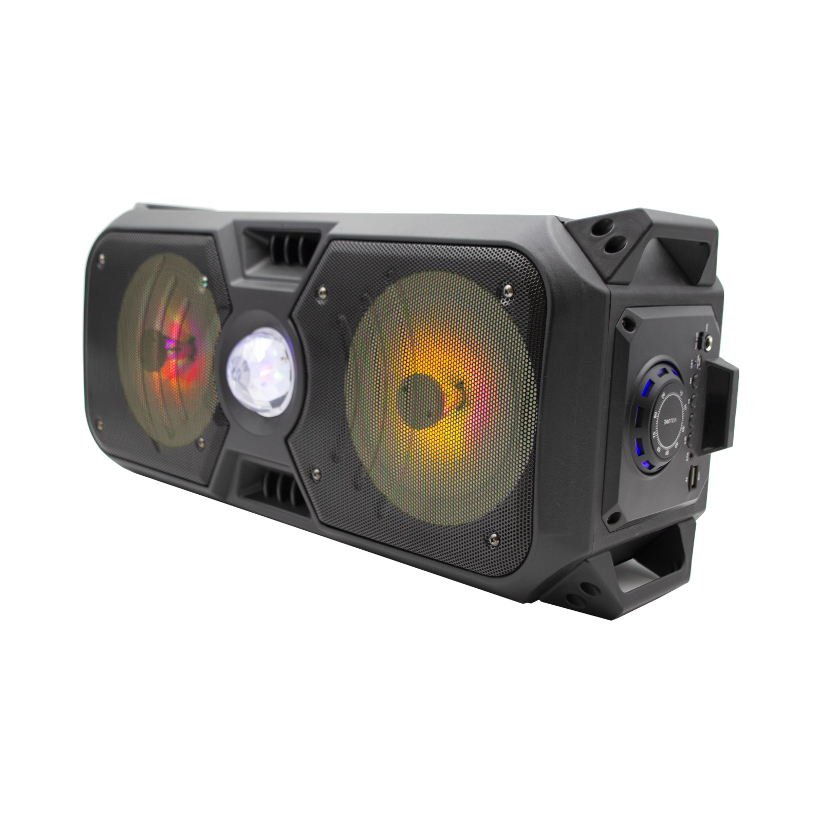 DIVERSIÓN GARANTIZADA; altavoces Bluetooth con luces multicolores LED con efecto luces disco; multifunción con puerto USB y Lector SD para reproducir tus MP3 Radio FM Kareoke y conexión Bluetooth.