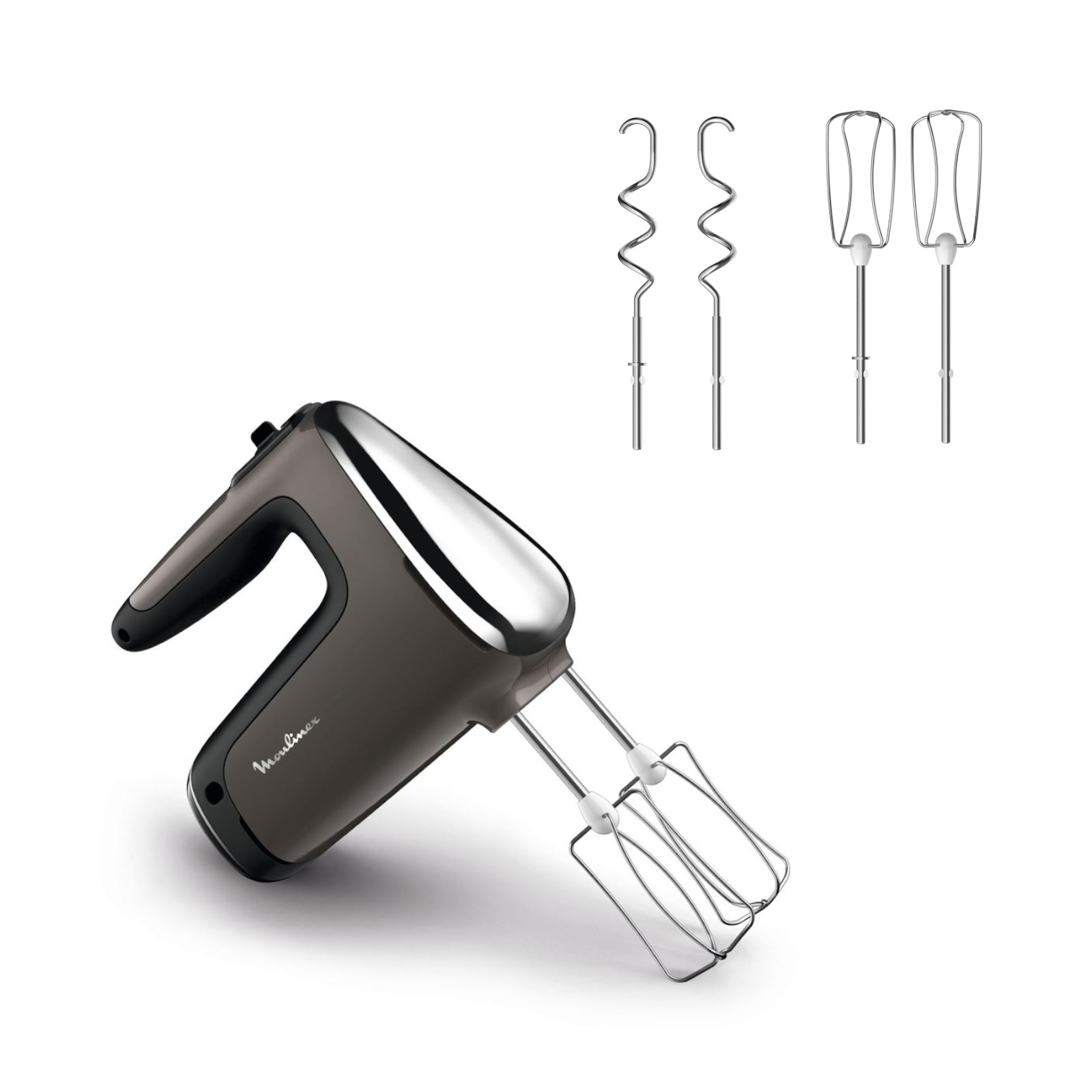 Con Moulinex, ahora es más fácil que nunca disfrutar del aroma que desprenden tus postres y otras recetas caseras al salir del horno. Es la batidora de repostería ideal. Lo que es más, Powermix Silence es la batidora amasadora más silenciosa y más potente de Moulinex, ya que ha sido diseñada para ofrecer un rendimiento imbatible y generar menos ruido, con lo último en tecnología del silencio y un robusto motor de 600 W. Su potente motor permite mayor velocidad en la función turbo, de tal manera que ahorras tiempo en la elaboración de tus recetas. Descubre que cómodo es batir y amasar con sus excepcionales niveles de silencio, gracias a su flujo de aire optimizado y a su avanzada tecnología de amortiguación del ruido, para que disfrutes de un sólido rendimiento y de unos resultados perfectos incluso con las masas más densas. Dispone de un asa integrada de fácil agarre con un suave acabado, así como un regulador de velocidad y función turbo para batir con total facilidad. Sus dos varillas de acero inoxidable baten, mezclan y montan preparaciones ligeras a la perfección, mientras sus dos ganchos de amasar de acero inoxidable son ideales para las masas más espesas.