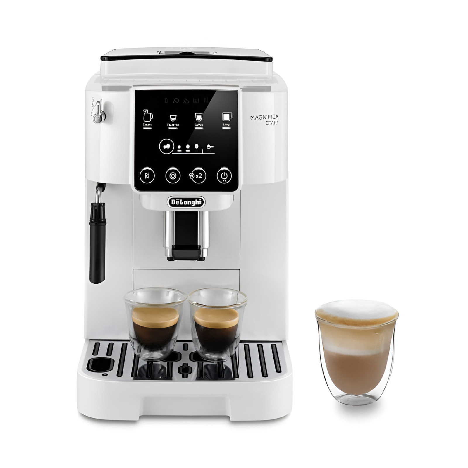 Entra en el mundo del café de grano a taza con De'Longhi Magnifica Start, que te ofrece todo lo que necesitas para empezar a tomar tus bebidas favoritas a base de espresso en casa. Cuenta con una interfaz fácil de usar y un llamativo acabado blanco, con una selección personalizada de bebidas que se entregan con un solo toque.