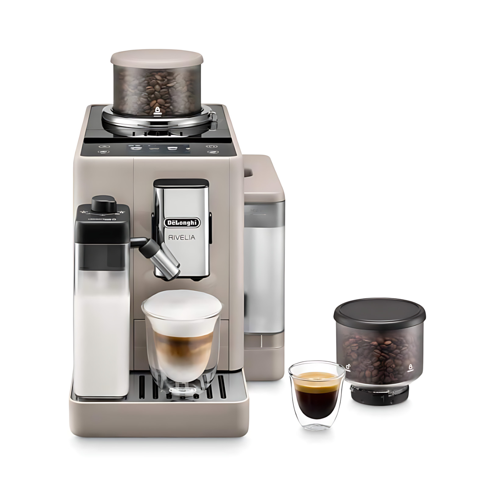Sumérgete en el mundo del café con Rivelia. Explora infinitas variedades de granos con el sistema Bean Switch; disfruta de una experiencia envolvente con una pantalla táctil a todo color de 3,5 pulgadas, con animaciones detalladas y rutinas de café adaptadas a ti. Remata tus bebidas con leche con una espuma fina y abundante gracias a la tecnología LatteCrema Hot, en una máquina compacta que se adapta a tu estilo.