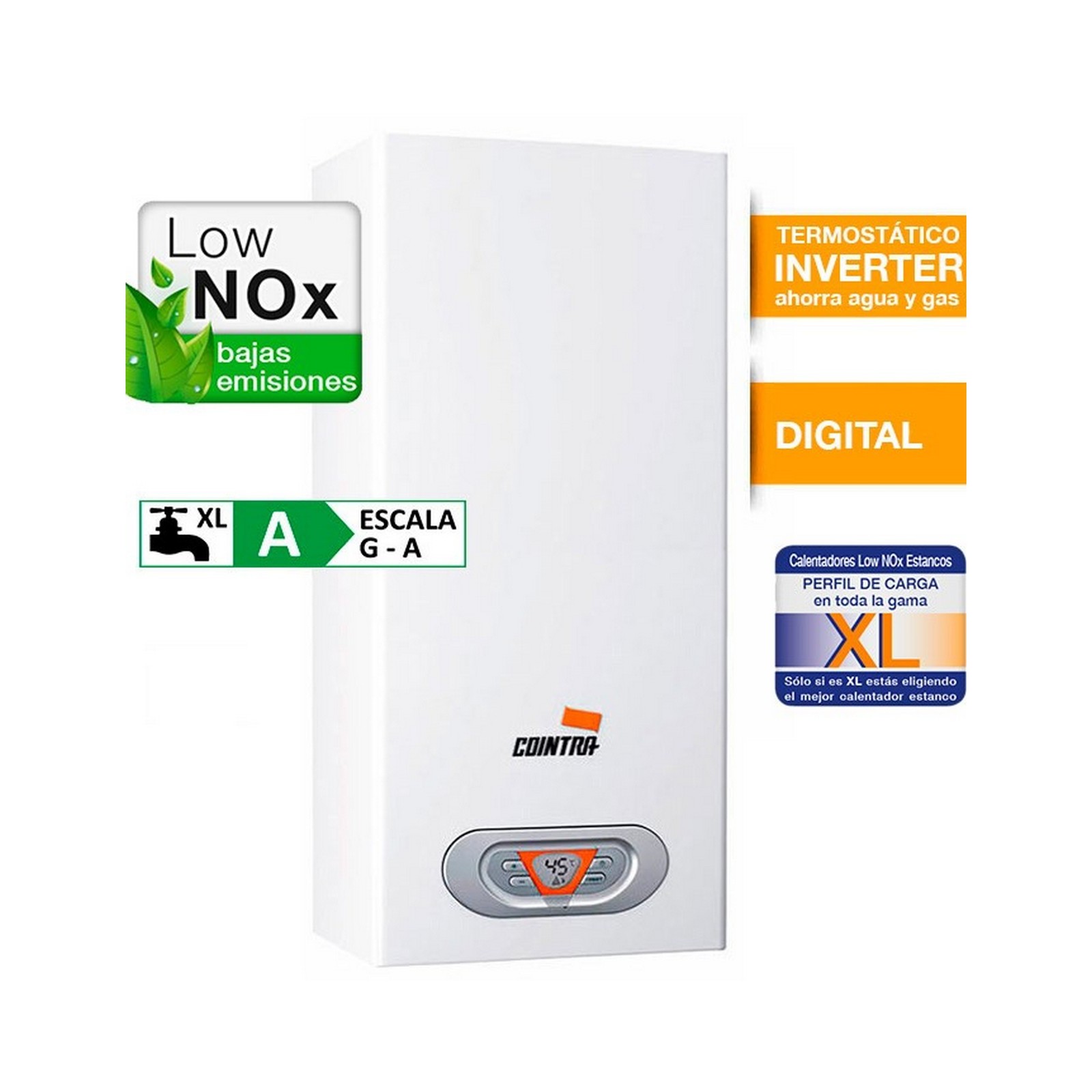 Los modelos de 12, 14 y 17 l/min de la gama de calentadores LOW NOx de Cointra obtiene en su perfil de carga la máxima calificación XL, lo que nos asegura el máximo confort.