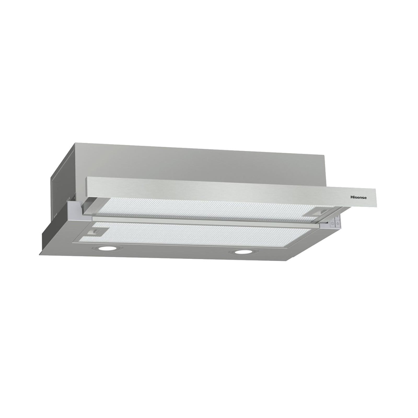 Ideal para cocinas pequeñas. Es invisible en la cocina, ya que se instala en el mueble sobre la placa y queda oculta detrás de un panel o una puerta. La bandeja telescópica se despliega, lo que aumenta la superficie de extracción para eliminar el vapor, el calor y los olores de los alimentos.