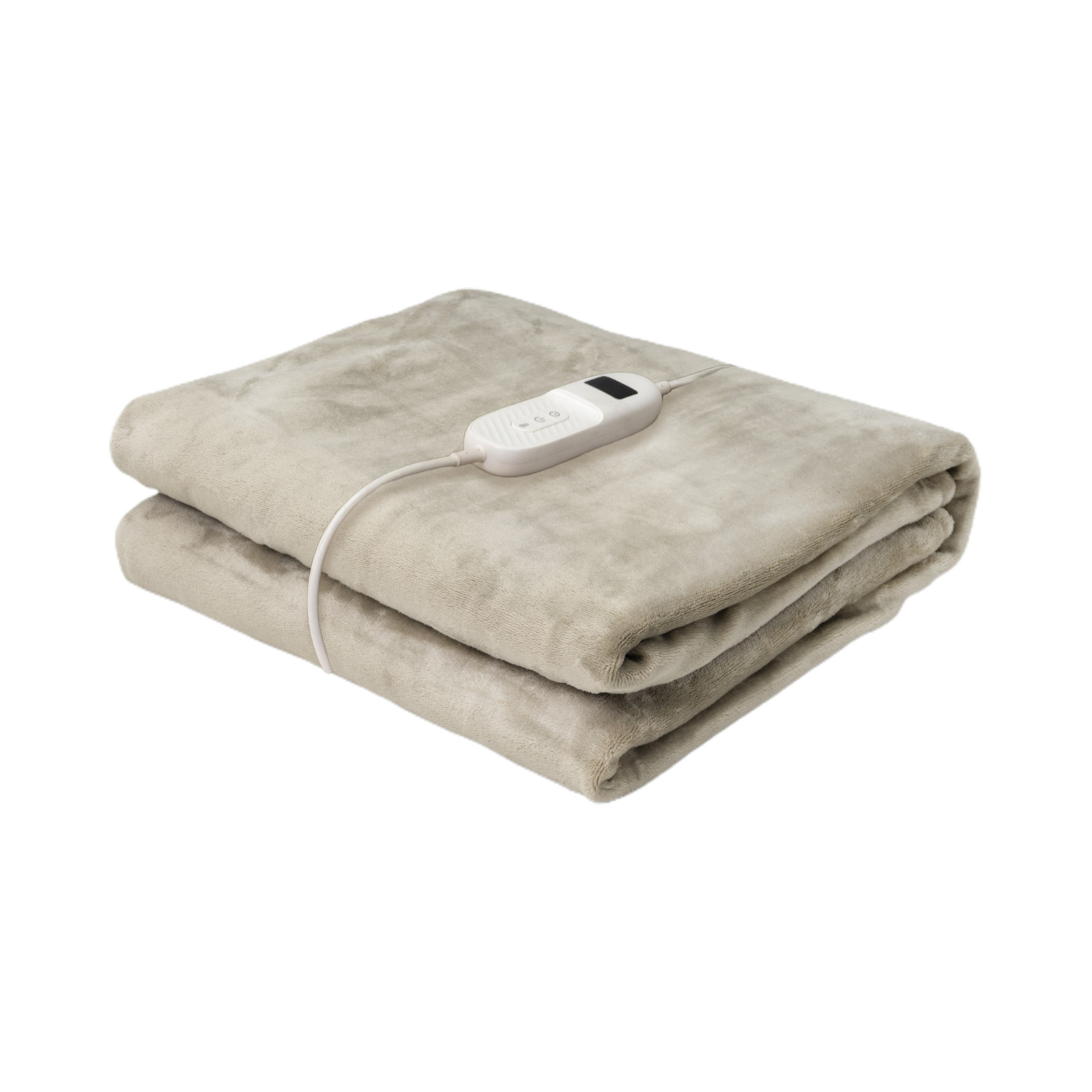 Manta Eléctrica de gran tamaño de la serie BIENESTAR en color BEIS. Realizada en material textil muy suave transmitiendo sensación de bienestar y ayudando a su relajación. Para cama o sofá, posee una potencia de 160 watios, con 9 niveles de calor pudiendo ajustar la temperatura que desee. Crea calor rápidamente y su TEMPORIZADOR le permitirá configurar su manta para que se apague a los 20/40/60/80/100/120/160 ó 180 minutos, transcurrido el tiempo programado desde su controlador, la manta se apagará automáticamente. Tiene PROTECCION AL SOBRECALENTAMIENTO, aportando un gran ahorro de energía y un buen sistema de seguridad. Ideal para dolores musculares y favoreciendo al descanso. Su controlador con pantalla digital es fácil de manejar y desmontable, permitiendo lavar su manta siempre con agua fría. Tiene unas dimensiones de 180x130 centímetros.
