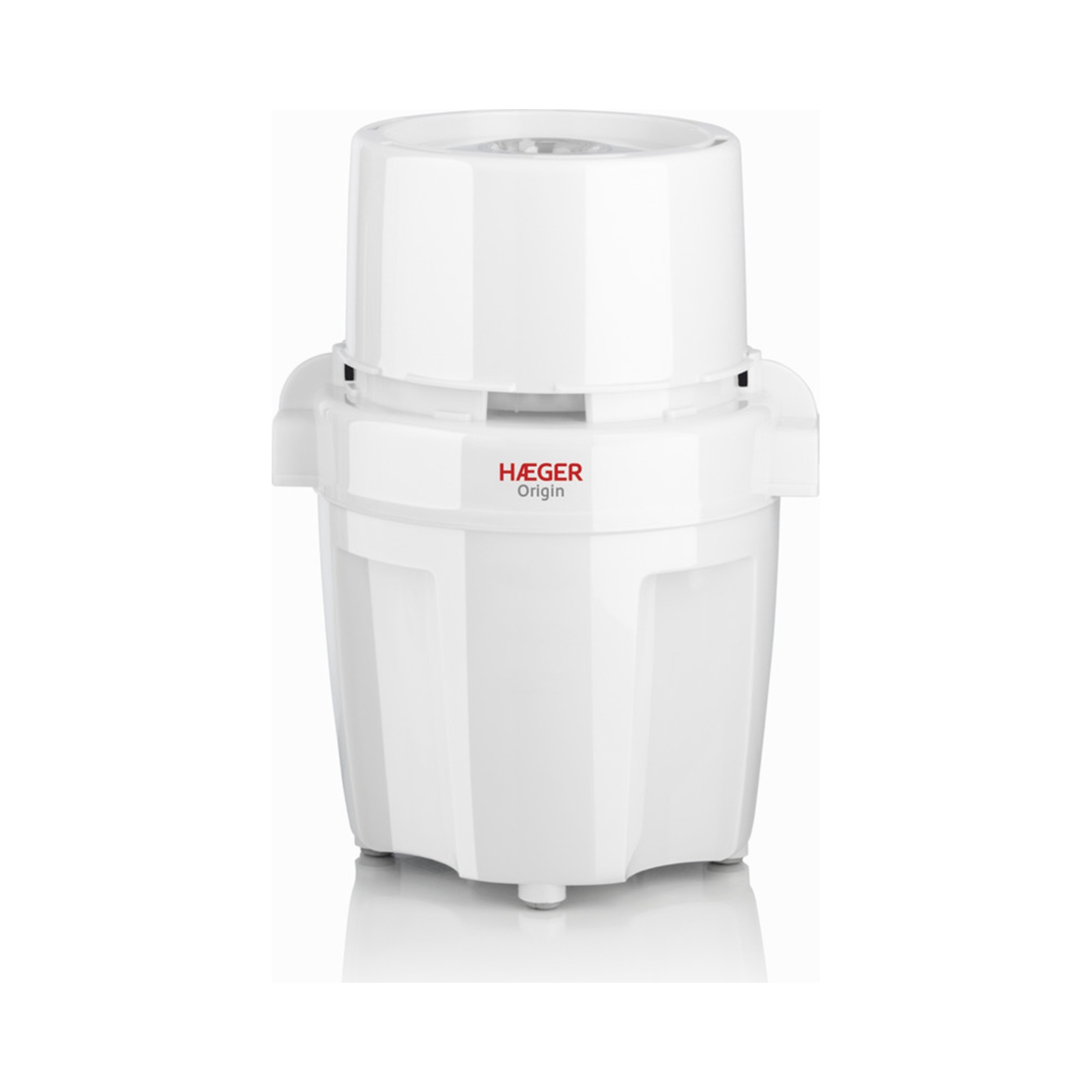 La picadora eléctrica HÆGER ORIGIN funciona por presión en la tapa, lo que facilita su uso y manejo. Esto permite una operación segura y eficiente al picar alimentos.