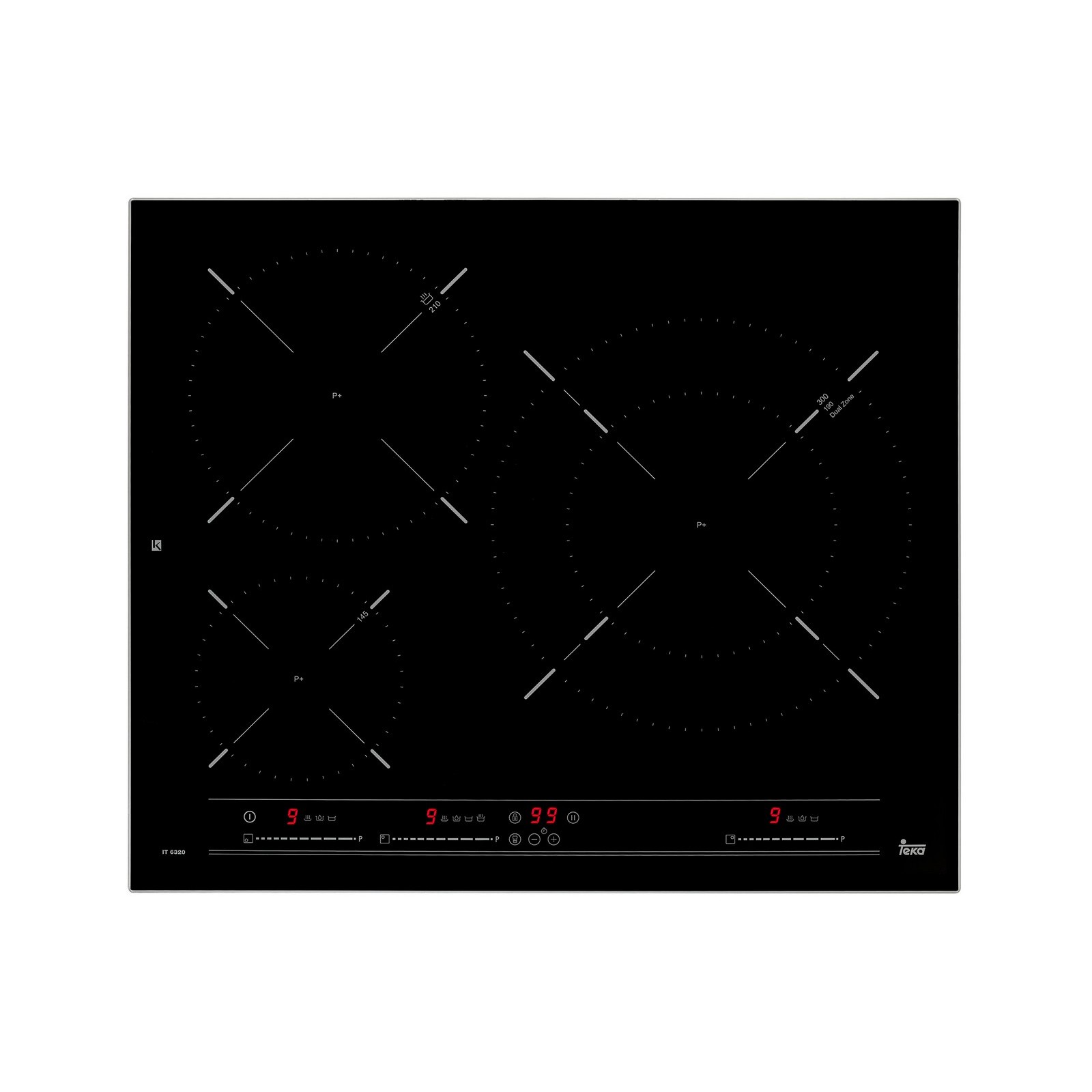 Elementos calefactores: una placa de inducción Ø 145 mm, una placa de inducción Ø 210 mm y una placa de inducción doble circuito Ø 190/300 mm
