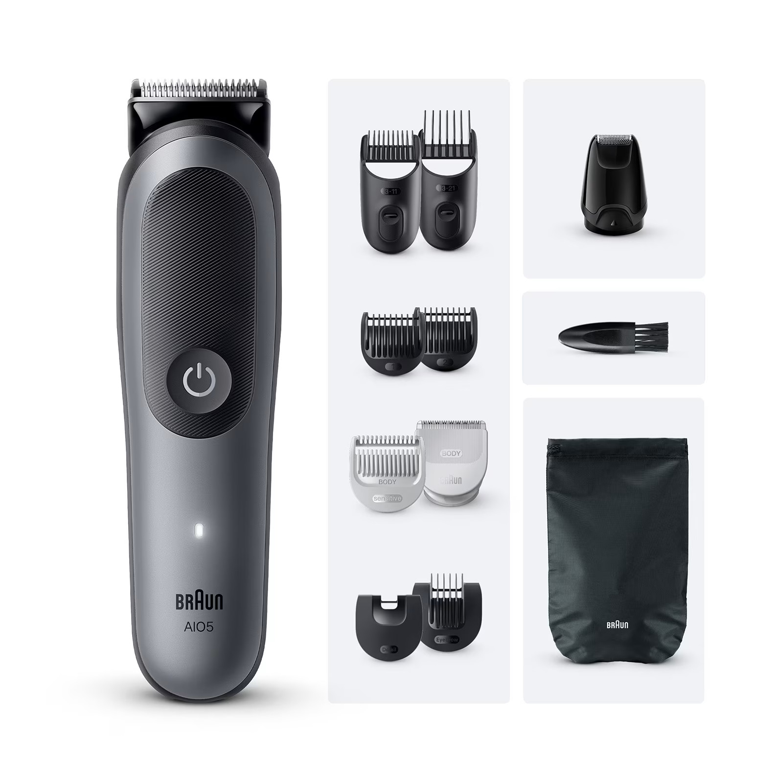 La recortadora todo en uno afeitado 11 en 1 de Braun incluye accesorios para recortar la barba, cortar el pelo y rasurar el cuerpo.