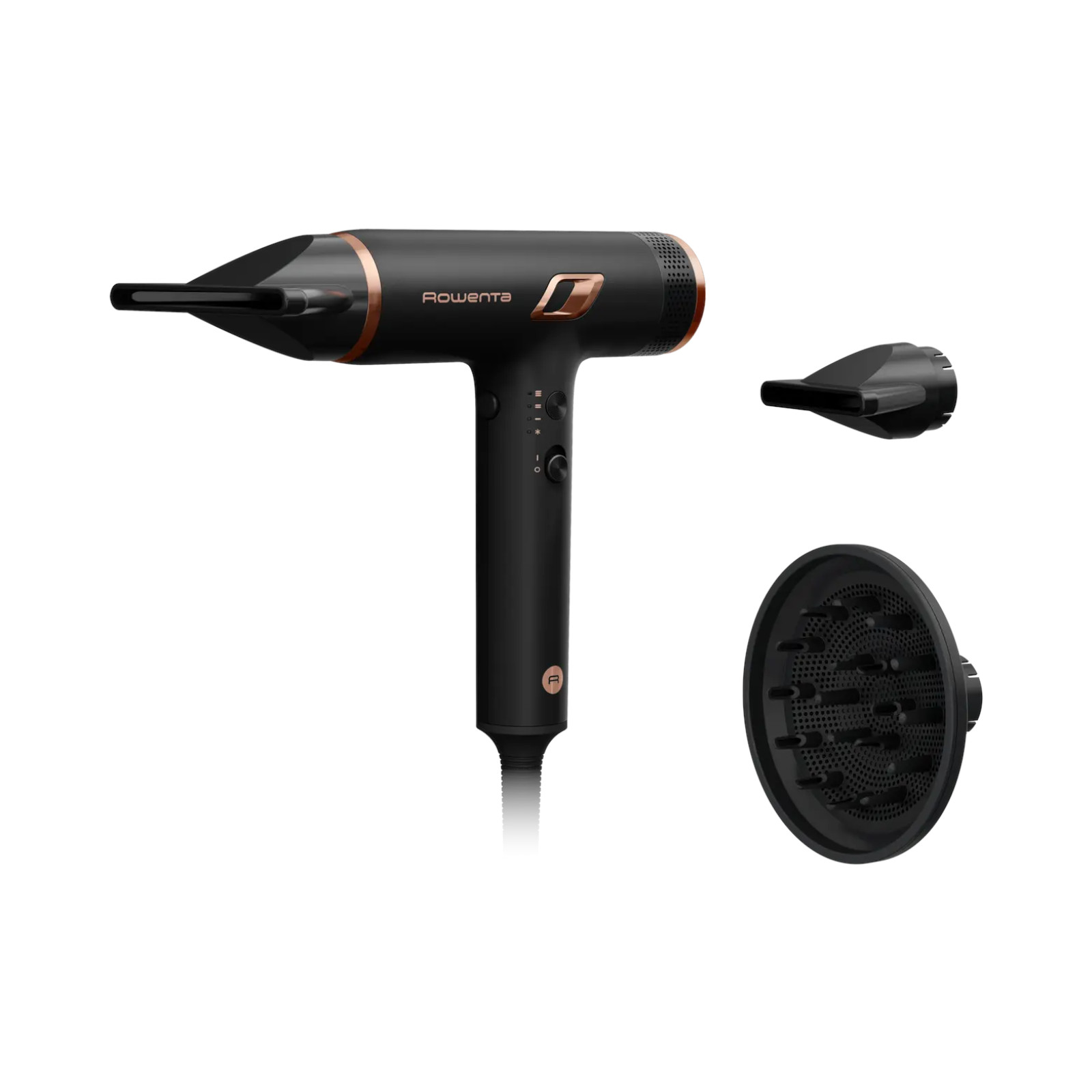 La dos boquillas concentradoras de 4 y 6 mm dirigen el flujo de aire con precisión para alisar el cabello, mientras que el difusor ayuda a esculpir rizos bien definidos y aporta volumen.