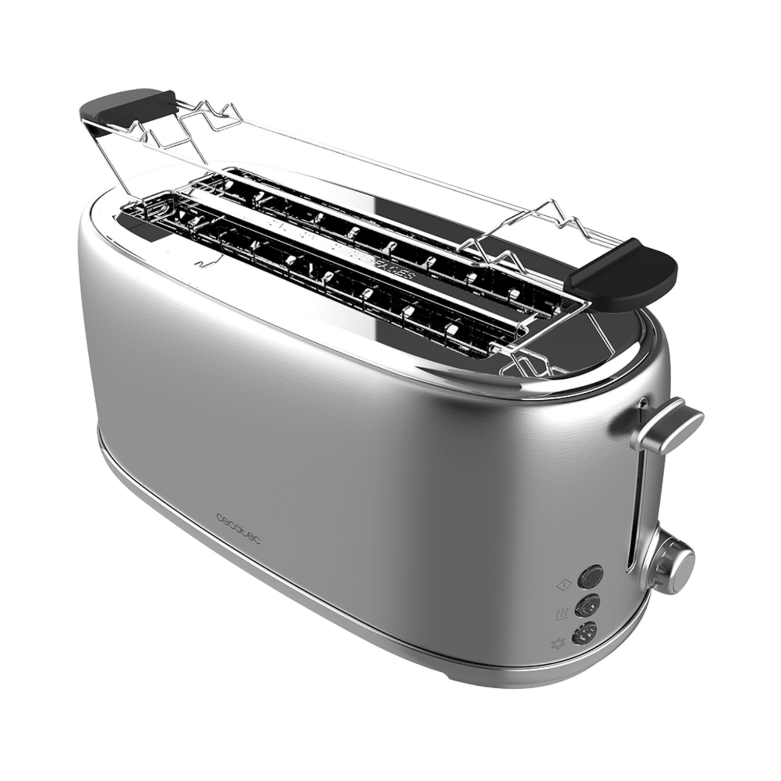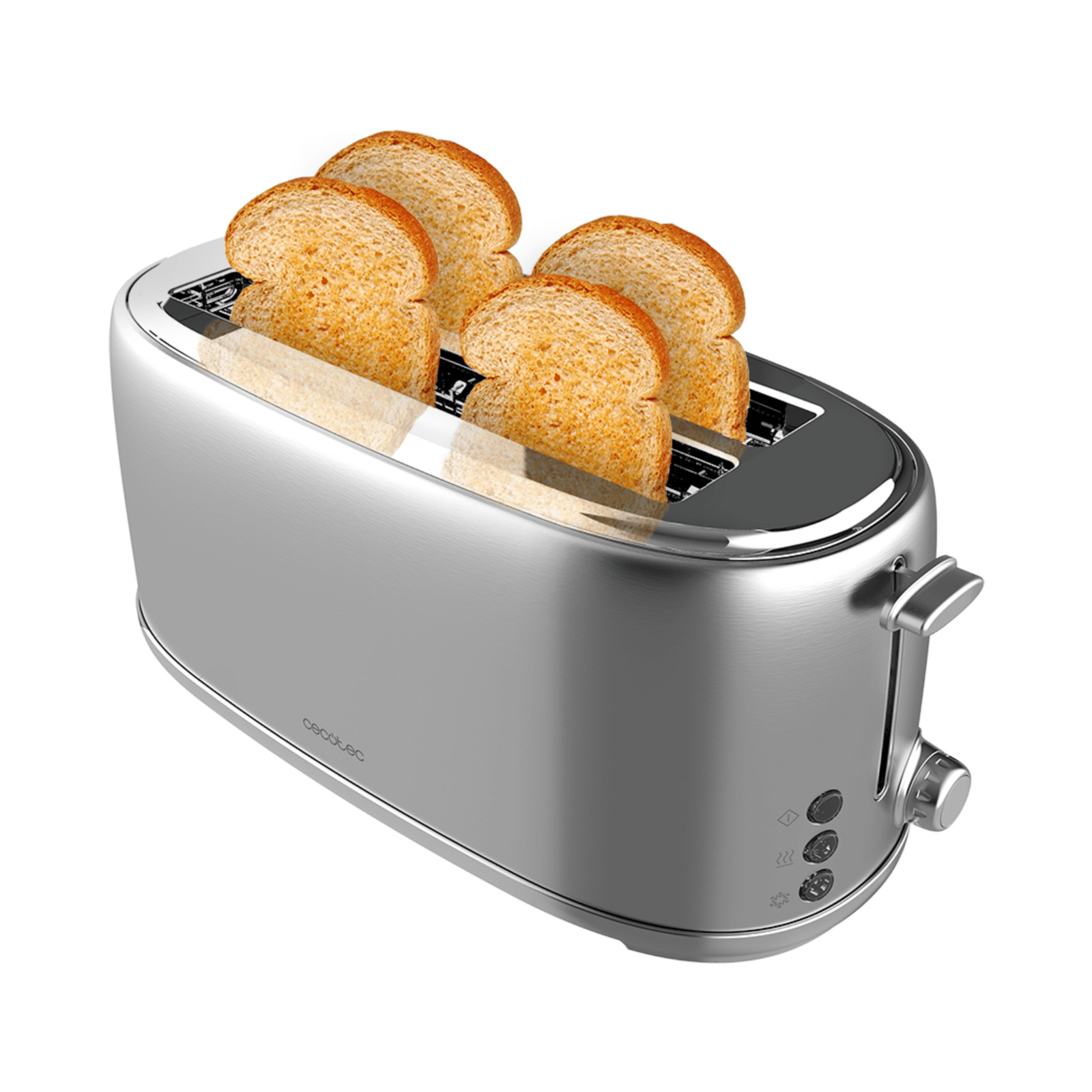 - Tostadora de doble ranura larga con capacidad para cuatro tostadas.