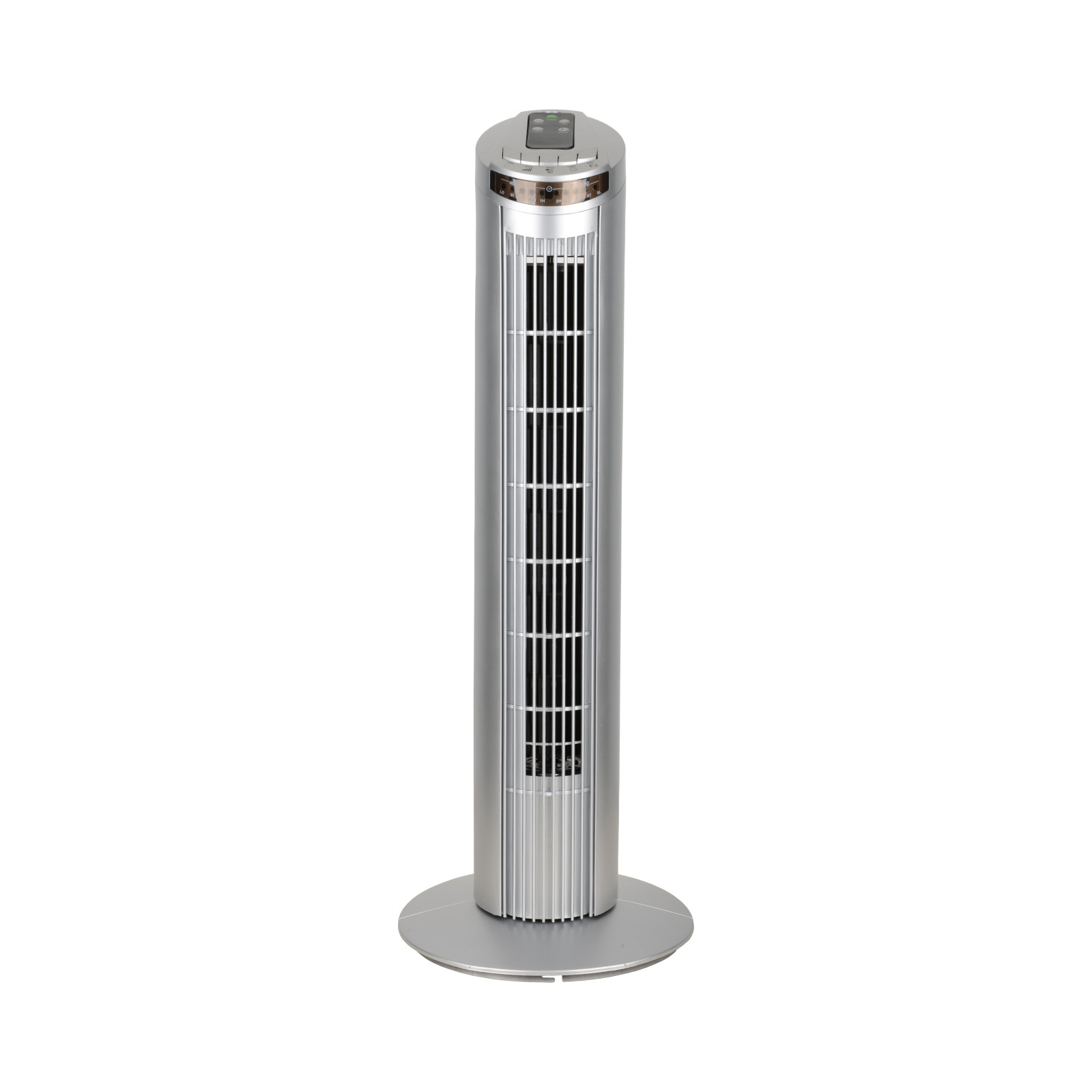 Ventilador de Torre de la serie ORBIGO en color PLATA. Realizado en metal y ABS. Con 45 watios de potencia, tres velocidades y tres modos de aire (natural-sueño-normal), con dos posiciones, fijo y rotatorio, que podrá seleccionar para obtener el modo y distribución de aire deseada según las necesidades de la habitación a ventilar. Diseño moderno y actual, de fácil manejo. Tiene una medida de 75 centímetros de alto y una base de 27 centímetros de diámetro. Mando a Distancia INCLUÍDO y TEMPORIZADOR hasta 7,5 horas para su comodidad y un mayor ahorro de energia.